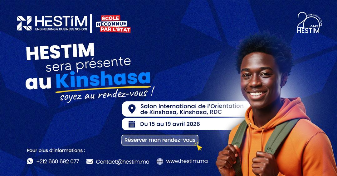À l’occasion du Salon International de l’Orientation au Gongo, l’équipe HESTIM sera présente à Kinshasa du 15 au 19 avril 2026 pour rencontrer les lycéens, étudiants et parents, répondre à leurs questions et les accompagner dans la construction de leur parcours académique.
